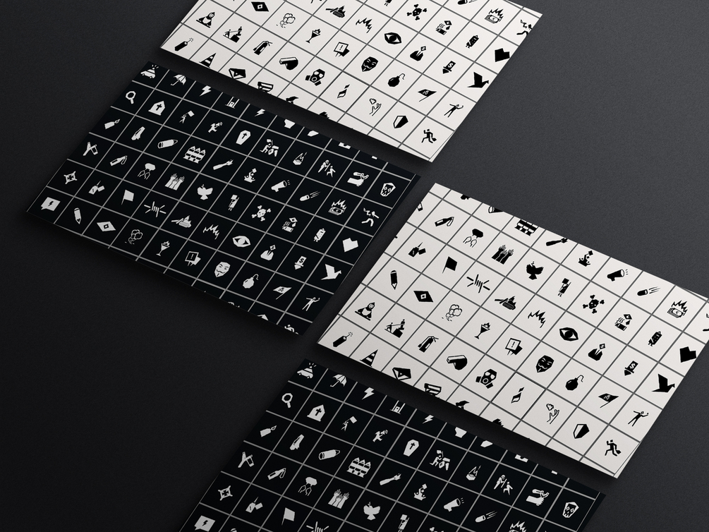 Cette police d'icônes contestataires contient 80 symboles inspirés des outils, armes et tactiques des grandes protestations contemporaines. Ils sont tous compatibles avec Illustrator, Photoshop et les outils de dessin vectoriel.